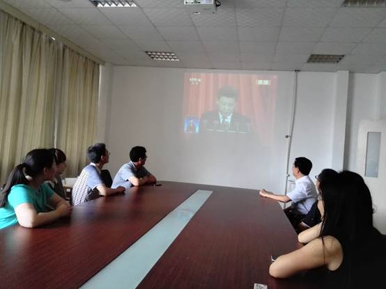 2016年7月1日,十大电子游艺 机关组织党员在静思楼210会议室集体收看中国共产党成立95周年大会直播。