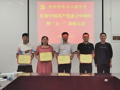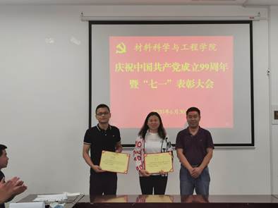 党委副书记张新柏宣读《中共电子游艺-十大电子游艺 委员会关于表彰十大电子游艺 先进党支部、优秀党员、优秀党务工作者的决定》,授予高分子材料与工程系党支部等2个党支部“先进党支部”荣誉称号,吴广磊等4位同志“优秀共产党员”荣誉称号,李洪亮等2位同志“优秀党务工作者”荣誉称号,王雨霄同志“优秀学生党员”荣誉称号。