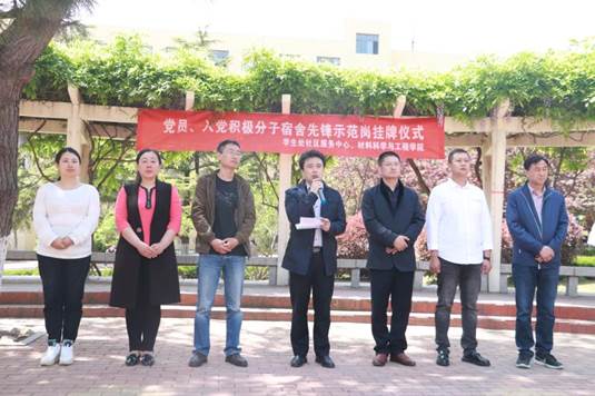 5 7日中午十二点半,十大电子游艺 党员、入党积极分子宿舍先锋示范岗挂牌仪式在汇园二号楼前举行。学生处处长解涛、副处长周伟,电子游艺 党委副书记张新柏出席挂牌仪式,社务服务中心老师、电子游艺 学工办团委负责人,电子游艺 2017级、2018级研究生党员、入党积极分子和2016级、2017级本科生党员、入党积极分子参加挂牌仪式。
