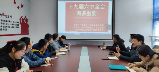 党委中心组在科技楼小会议室召开扩大会议,专题学习党的十九届六中全会精神,会议由党委书记万宗喜主持,班子全体成员参加会议,各支部书记列席了会议。