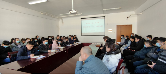 在科技园D座406会议室召开2022年春季学期工作部署暨第一次政治学习会,党委书记万宗喜主持会议,全院教职工参会。