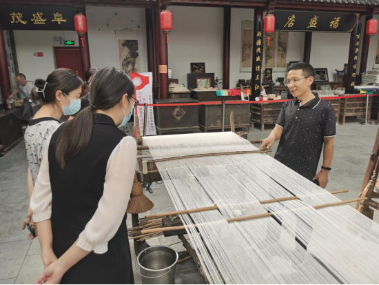 在中国柳曈丝绸文化博物馆,党员们通过参观学习,结合工作人员的现场讲解,从丝绸之源、丝绸之梦、丝绸之艺、丝绸之乡、丝绸之路、丝绸之韵、丝绸之光等各个方面深入了解了近代海上丝绸之路及昌邑华侨海外分布情况,感受到柳疃古老丝绸文化的独特魅力。