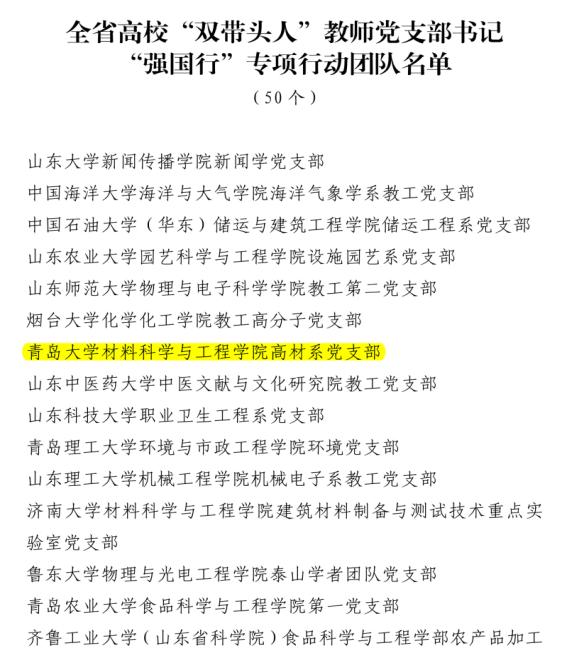 近日,中共山东省委教育工委公布了全省高校“双带头人”教师党支部书记“强国行”专项行动团队名单,全省共50个“双带头人”团队通过专家评审,十大电子游艺