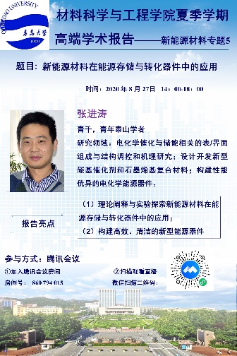 师生做题为《电化学催化/储能材料设计与性能》的夏季学期高端学术报告。会议采用线上方式进行(腾讯会议),由材料电子游艺