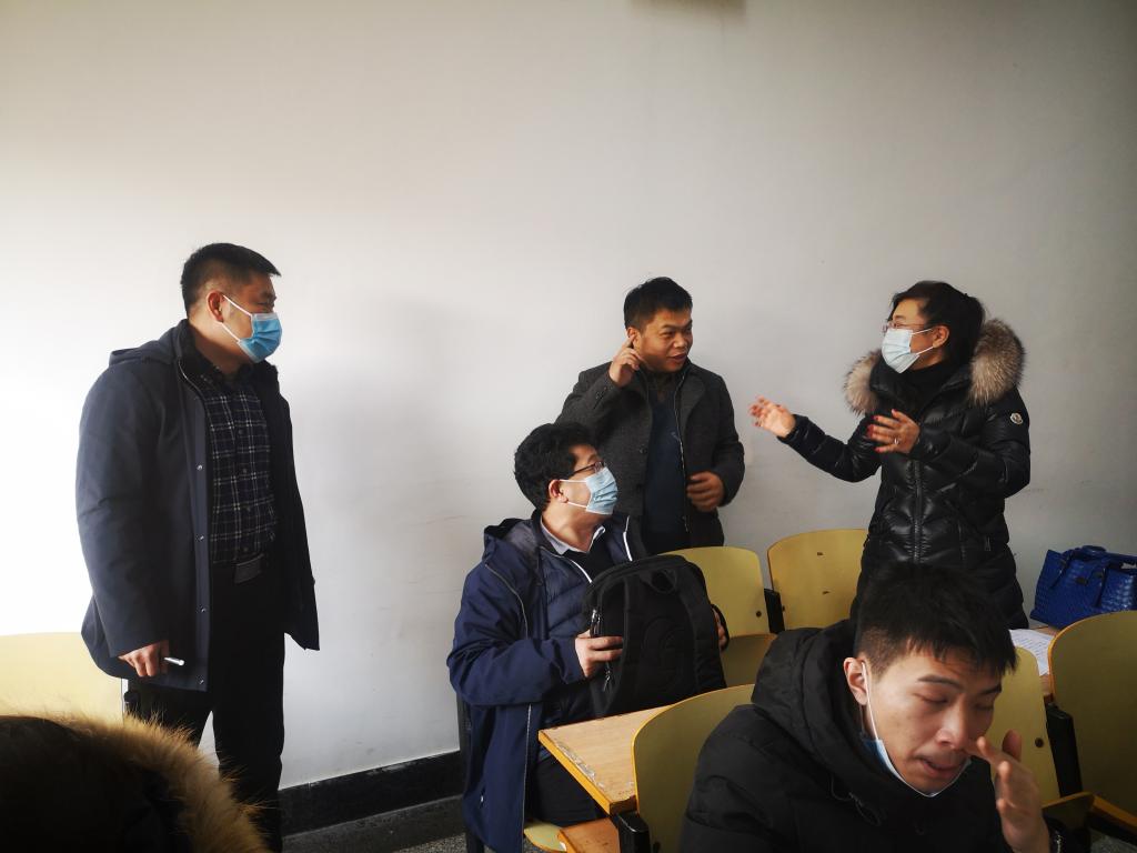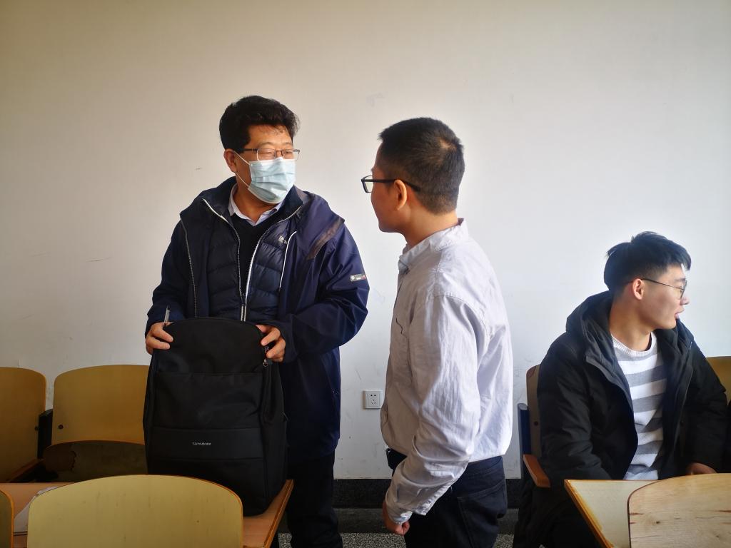 221日,新学期开学第一天,电子游艺 党委书记万宗喜、院长隋坤艳、副书记曹俊、副院长黄林军深入教学一线听课调研,与师生同上“开学第一课”,检查了解新学期教学工作和学生学风状况。