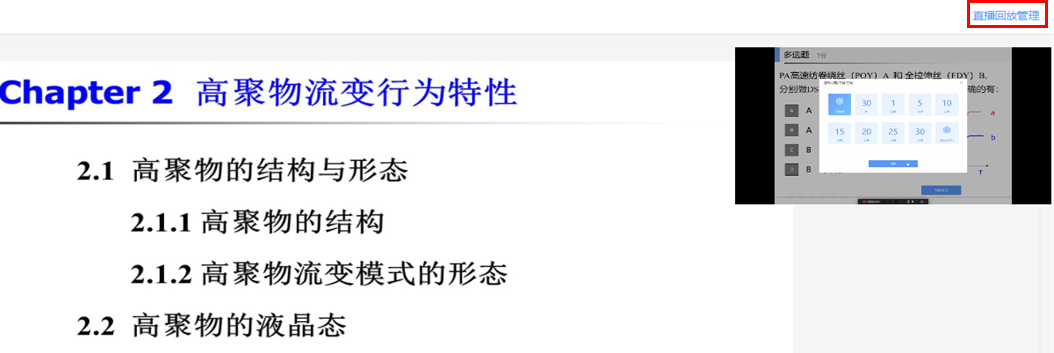本周采用雨课堂5.2视频直播分享屏幕给研究生上了《流变学基础》,很流畅,不卡顿,课间没敢停,学生学习状态良好,全到齐,但有个别同学用本科生学号听课,显示为“旁听生”,换绑定为研究生学号后才顺利进入班级课堂。课中积极互动,一堂课就发了近百条弹幕。整理了本堂课的授课体会,分享给大家,仅供参考。