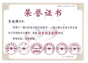 李培耀老师指导,复合材料与工程专业学生:郭浩、周学斌、毛瀚卿、张招斌、赵昌荣提交的作品《超细胶粉在热塑性弹性体中的应用》荣获二等奖。李培耀获评“优秀指导教师”称号。