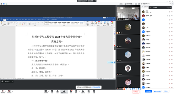 2022年6月9日13:00,通过腾讯会议召开了2021级材料类大类分流专业宣讲会,宣讲会由电子游艺