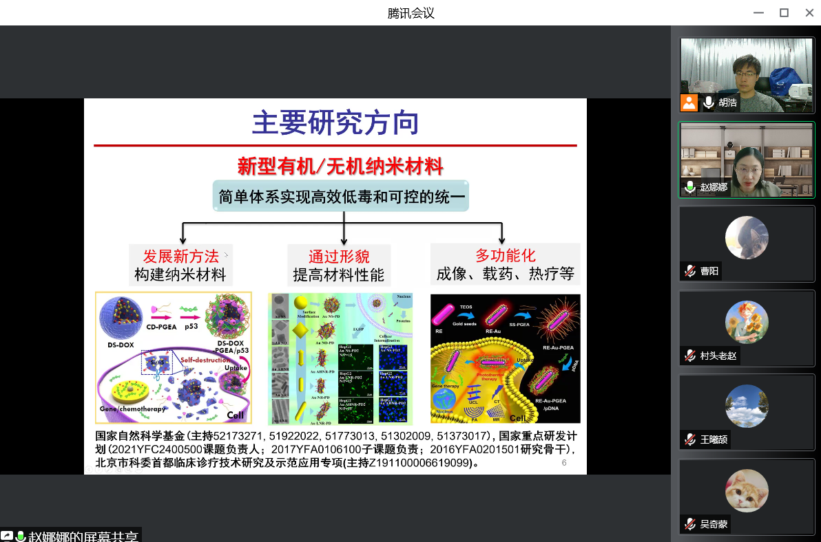 邀请,为我校本科生和研究生作了题为《有机/无机杂化纳米材料在生物医学中的应用研究》的学术报告。报告会采用线上形式,通过腾讯会议直播,近百名师生参加。