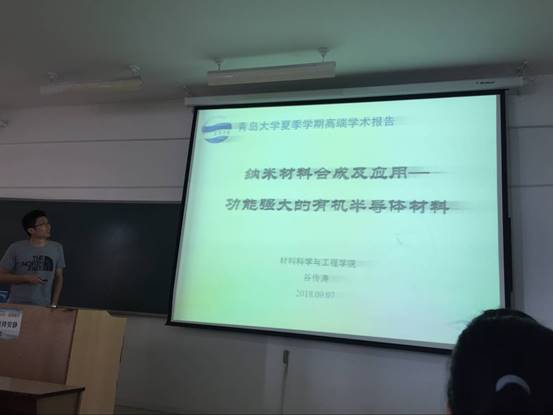 青年教师谷传涛做了夏季学期高端学术报告,报告题目为“纳米材料合成及应用---功能强大的有机半导体材料”,十大电子游艺