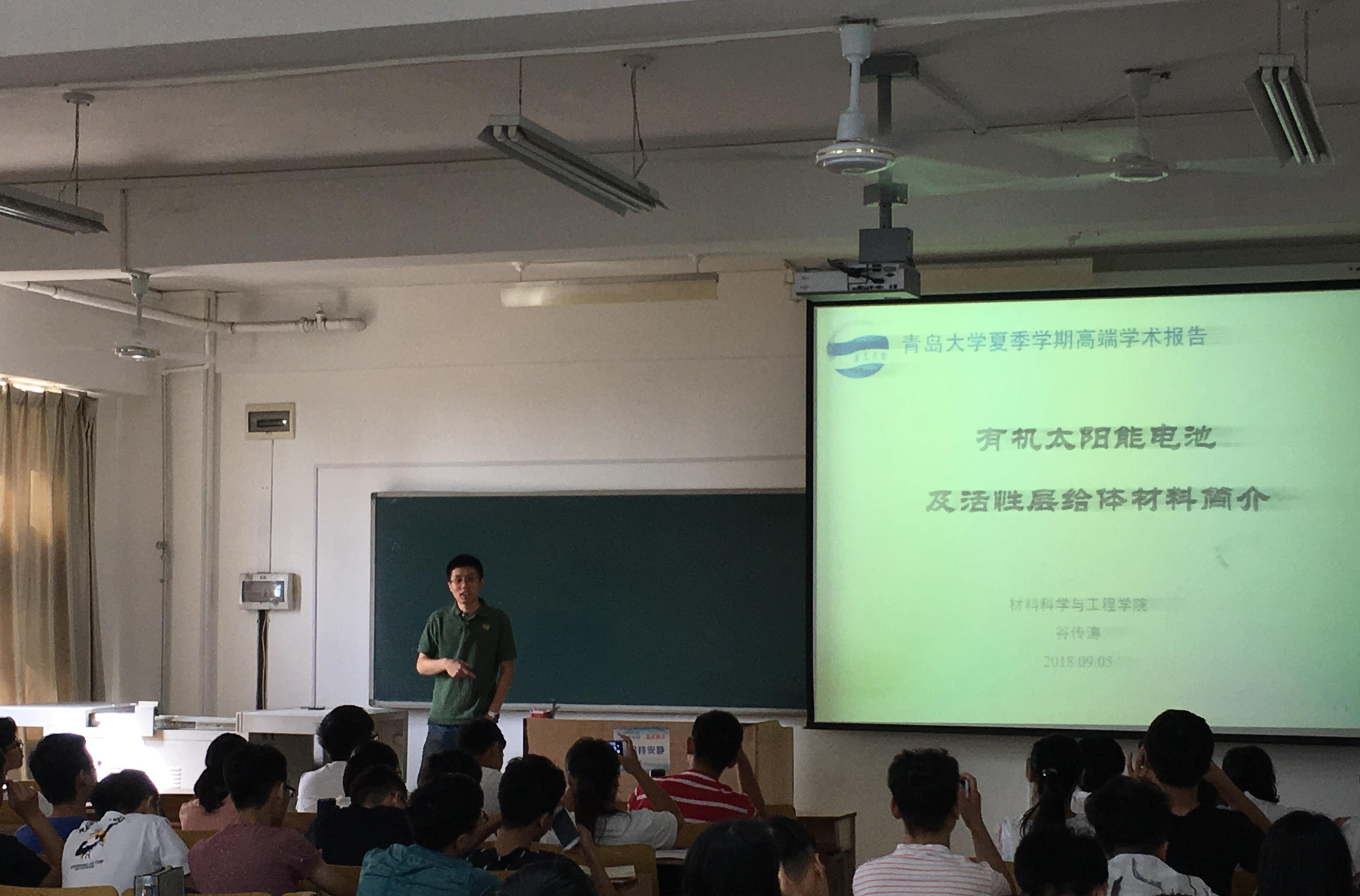青年教师谷传涛做了夏季学期高端学术报告,报告题目为《有机太阳能电池及活性层给体材料简介》,十大电子游艺