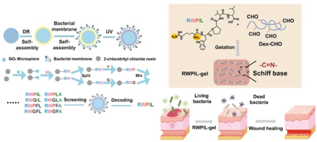 多药耐药菌严重影响急性皮肤伤口的愈合。本研究利用细胞膜色谱结合一株一物法多肽库筛选抗菌肽,并利用抗菌肽和氧化右旋糖酐制备抗菌水凝胶。该水凝胶可有效促进上皮细胞的粘附,在杀灭伤口寄生细菌的同时促进伤口愈合。本研究发表在ACS Applied Materials & Interfaces上。我校博士生高凤苑为本文第一作者,生物医用材料与工程研究院为第一通讯单位。(全文链接://doi.org/10.1021/acsami.3c03069)
