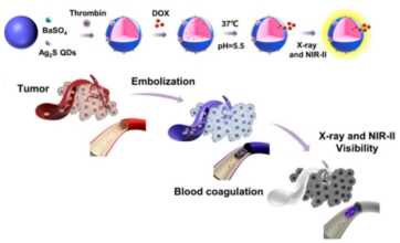 经导管动脉栓塞术在肿瘤介入治疗中有巨大作用。本研究报道了一种基于明胶的栓塞微球,具备NIR-II荧光成像和X射线成像双重成像功能。将DOX装入微球内部,并键合凝血酶协同治疗肿瘤。我校博士生高凤苑与硕士生韩婷婷为第一作者,生物医用材料与工程研究院为第一通讯单位。(全文链接://doi.org/10.1021/acsmaterialslett.3c00164)