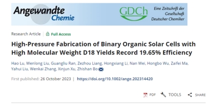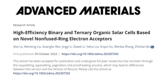 路皓副教授在国际顶级材料期刊《Advanced Materials》和国际顶级化学期刊《德国应用化学》(Angewandte Chemie)以及中国化学会旗舰期刊《CCS Chemistry》上分别发表题为“High-efficiency binary and ternary organic solar cells based on novel nonfused-ring electron acceptors”和“High-Pressure Fabrication of Binary Organic Solar Cells with High Molecular Weight D18 Yields Record 19.65% Efficiency”以及“Chlorinated thiazole based low-cost polymer donors for high efficiency binary and ternary organic solar cells”论文,论文的第一单位均为电子游艺-十大电子游艺