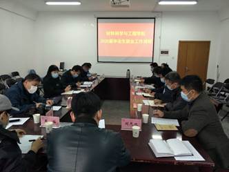 331日下午,校党委常委、副校长刘彩云到电子游艺 调研2020届毕业生就业工作,学生处处长解涛、副处长周伟和就业中心工作人员陪同调研。电子游艺 全体院领导,高材系、复材系系主任,毕业生辅导员参加调研座谈。调研座谈会由电子游艺 党委书记万宗喜主持。