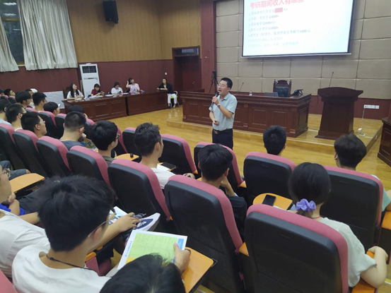 学生成长论坛”第一讲在青岛大学东院模拟法庭举行。讲座主题为考研全程规划及指导,邀请燕园教育李振老师主讲。十大电子游艺
