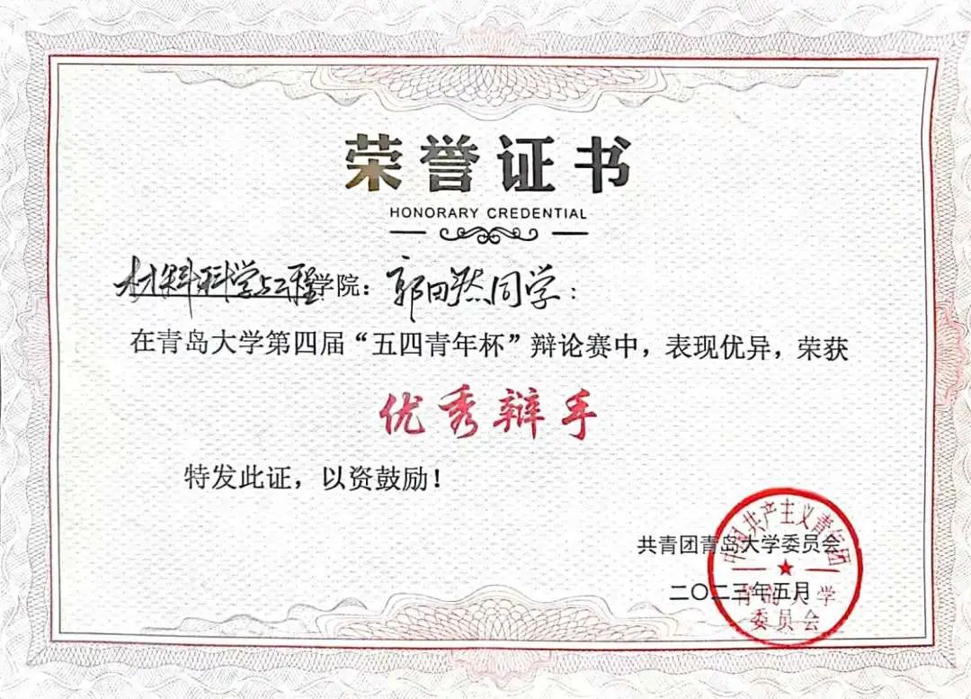 同时,郭田然选手获优秀辩手称号!