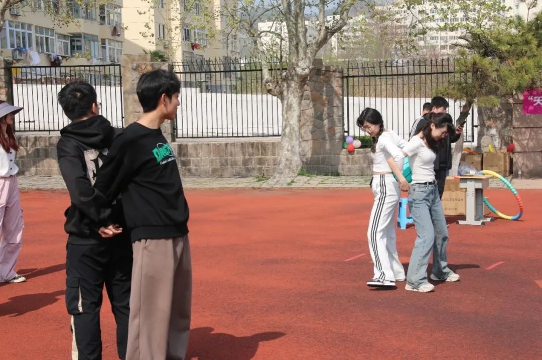 第三个项目是背对背夹篮球,每队两名队员背靠背,手臂缠绕,夹住篮球。裁判发令后,两人迅速将篮球运至指定地点,再由另两名队员接力返回起点,往返一次,最快完成任务的队伍获胜。能够把后背交托给对方的,才是最信任的人!