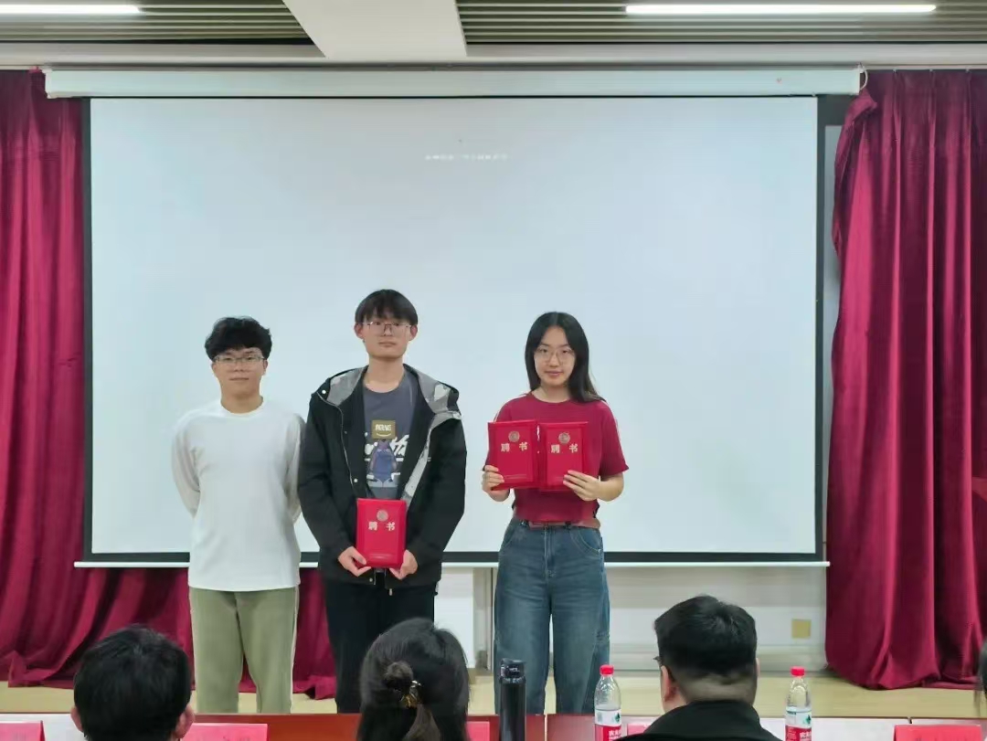 电子游艺 团委副书记王尊为第十届学生会主席团颁发聘书,主席团成员为分管部门部长颁发聘书。