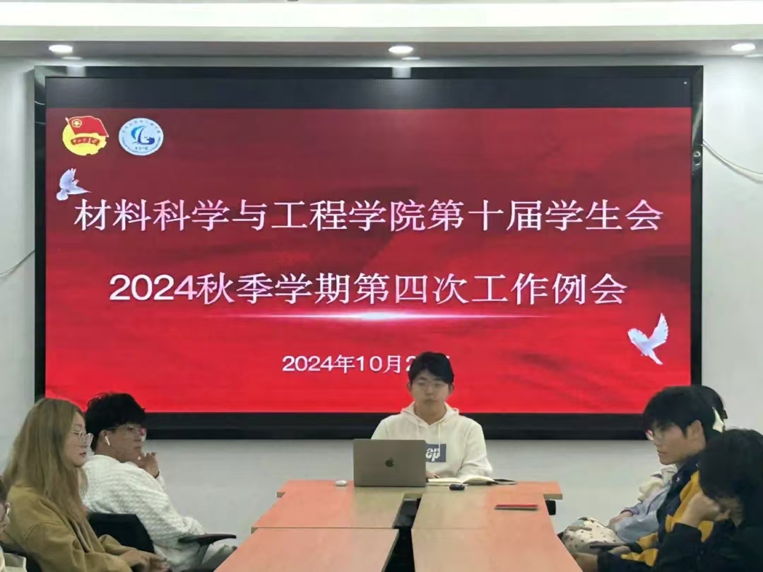 第十届学生会2024秋季学期第四次工作例会在慎思楼308会议室举行。本次会议由学生会主席法文昊主持,学生会主席曹毓婧、廖添旭,各部门负责人参加本次会议。