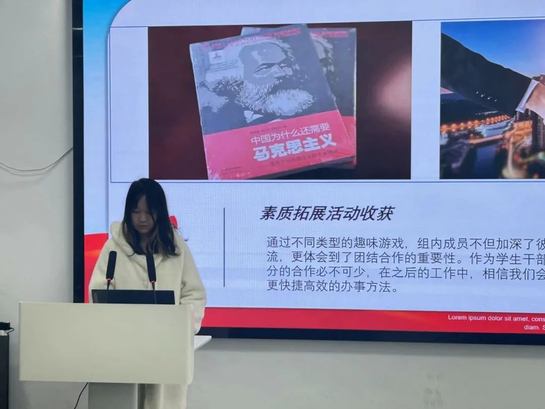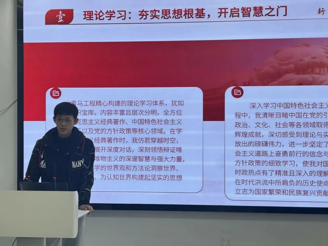 在学习感悟分享中,学员们以满腔的热忱充分展现了他们在这次培训中的丰硕成果。不仅交流了学习心得和实践经验,还就学生干部应如何以身作则、勇于担当进行了深入探讨。大家一致认为,学生干部应具备坚韧不拔的心理素质,面对困难和挑战时能够保持冷静和乐观,以积极向上的态度引领团队前行。此外,培训期间观看的电影《金刚川》也给大家留下了深刻印象,影片中的英雄人物在逆境中展现出的顽强拼搏精神,进一步坚定了学员们服务人民、奉献社会的决心。随着最后一位学员的精彩汇报,本次培训活动圆满落下帷幕。我们相信,通过培训班的精心培养,每一位学员都将成为传播马克思主义真理的璀璨火种,将理想的光芒播撒到更多人的心田。