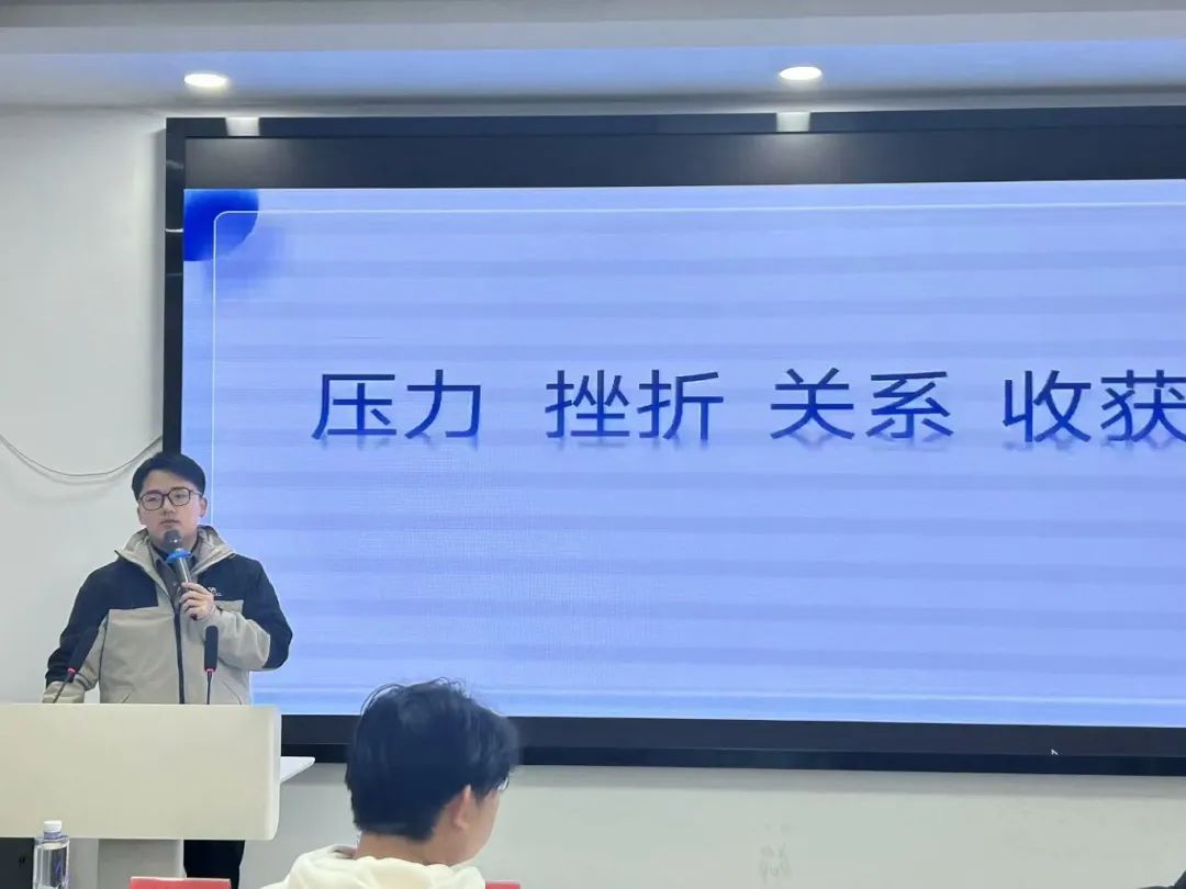 活动伊始,李明栋指出学生干部在校园中扮演着重要的角色,他们不仅是学生与老师之间的桥梁,更是各项活动的组织者和领导者,接着从“压力、挫折、关系、收获”四个词展开今天的话题。