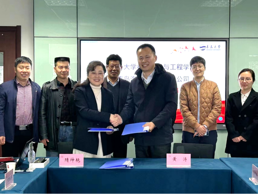 副院长李洪亮、黄林军,青岛海丽雅集团技术中心副主任谢丹、战略发展部副部长孙梦楠、人事部副部长刘洋参加洽谈及签约仪式。