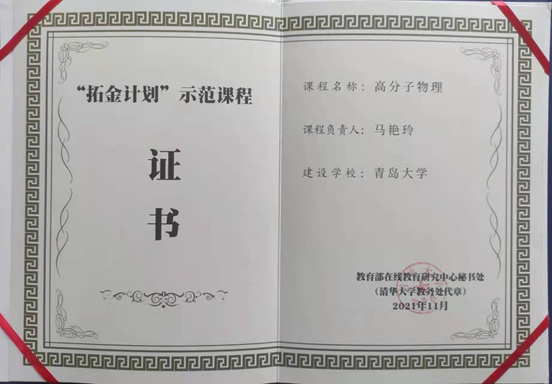 近日,教育部在线教育研究中心公布了首批拓金计划示范课程名单,十大电子游艺 马艳玲副教授主讲的《高分子物理》课程成功入选,该课程将在学堂在线平台面向全国教师开放观摩。