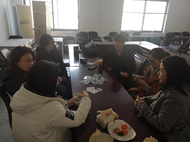 会议室开展了棋牌类活动,现场气氛热烈,欢声笑语之间,增进了老师们之间的了解,增强了团队合作精神。