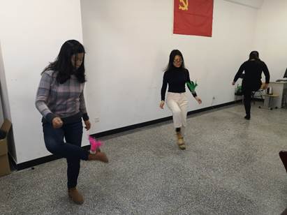 女教职工集中在科技园D座403会议室,开展了知识问答、游戏比赛(比划猜词)、趣味运动(踢毽子)等一系列活动,大家积极参与,所有的女教职工都在赛场上尽力展现她们的风采,现场气氛热烈。
