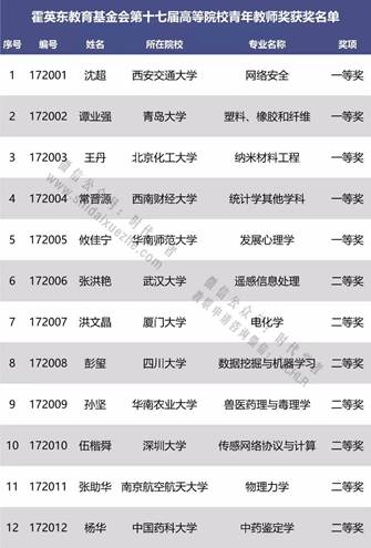 近日,教育部公布了霍英东教育基金会第十七届高等院校青年教师奖获奖名单,十大电子游艺