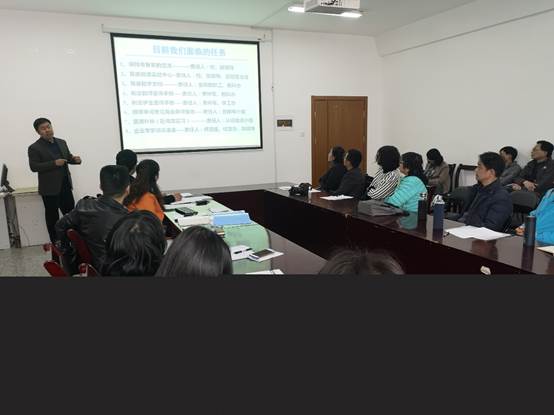 在科技园D座403会议室召开全体教职工大会,全面部署近期教学、科研和学科建设工作,会议由万宗喜书记主持。