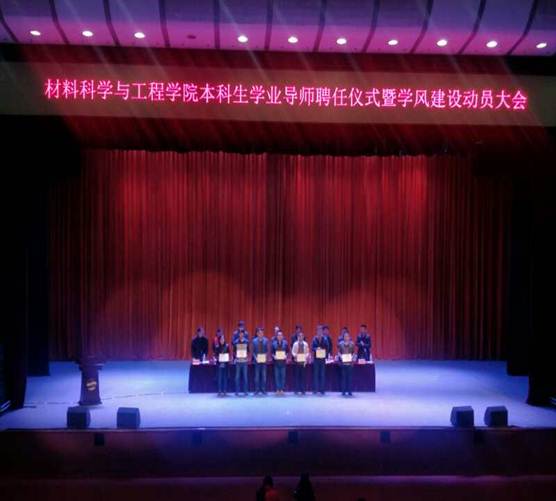 本科生学业导师聘任仪式暨学风建设动员大会在青岛大学剧院召开。青岛大学学生处处长吴世珍、教务处副处长刘建华、海洋纤维新材料研究院院长夏延致、石墨烯创新技术研究院院长刘敬权、材料电子游艺