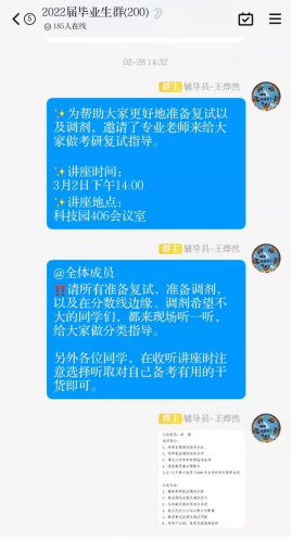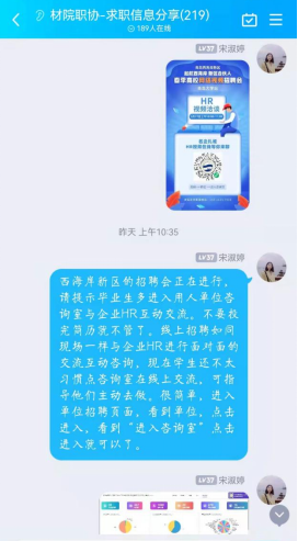 于近期开展毕业生考研就业推进系列工作,包括联合大众人才网组织筹划三月份专场空中双选会,举办毕业生考研就业专题推进会、研究生考试复试、调剂指导讲座等。
