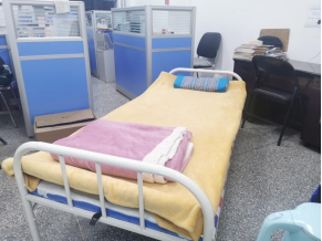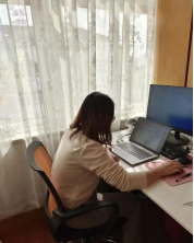 教科办老师,把年幼的孩子安顿在家,吃住在办公室,每日协调居家办公老师在线上教学遇到的问题。恰逢研究生录取调剂咨询周期,24小时接待值班电话咨询。