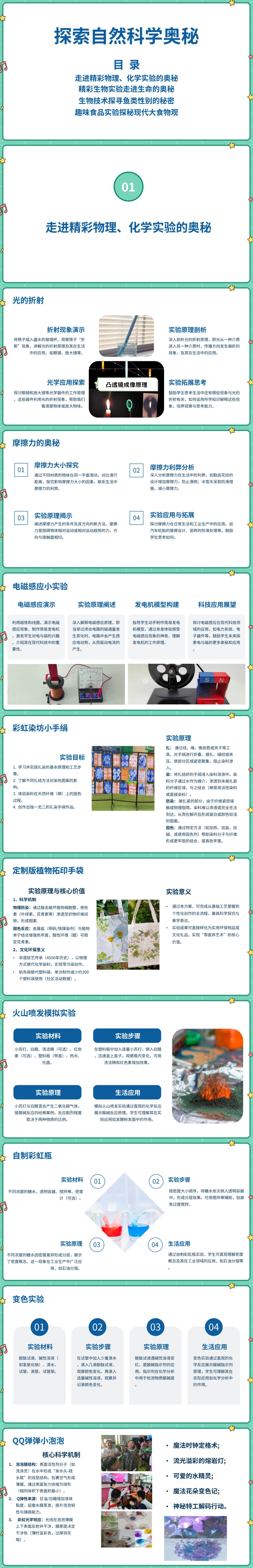 积极响应国家号召,依托专业优势,将科研成果巧妙转化,精心开发出一系列涵盖物理、化学、材料、生物等多学科知识的科学小实验。以此为基础,打造了独具特色的“材思料想”科普“材”单。通过生动有趣、富有启发性的科学小实验和实践活动,激发青少年对自然科学的兴趣,引导主动探索科学奥秘,培养科学素养和创新精神,推出了青岛大学“自然科学”创新训练夏令营。