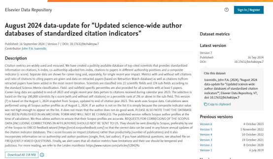 2024年9月16日,美国斯坦福大学发布了全球前2%顶尖科学家2024榜单(World’s Top 2% Scientists 2024)。