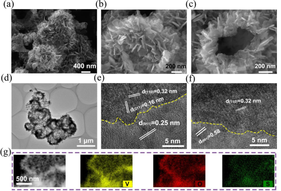 “本科生学业导师”计划,赵恩岩同学大二年级便进入导师李洪亮教授的课题组跟随研究生开展科研实验,对新能源材料的制备和性能研究表现了很高的热情并投入了极大的精力,利用课余和寒暑假时间,通过一步水热法合成了VO2@VS2异质结构材料,该材料用于高效稳定的锌离子存储,表现出优异的电化学性能,在0.1 A g⁻¹ 电流密度下呈现了468 mAh g⁻¹ 的可逆容量,在1.0 A g⁻¹ 电流密度下经过1000次循环后容量保持率为85%,展现了较高的循环稳定性。同时,通过密度泛函理论 (DFT) 计算结合电化学分析,揭示了VO2和VS2之间的异质界面协同效应及内建电场的作用机制。 此外,还通过原位拉曼光谱确认了该材料在循环过程中的锌离子存储机理。该研究成果为开发高性能锌离子电池正极材料提供了一种新的材料设计思路。