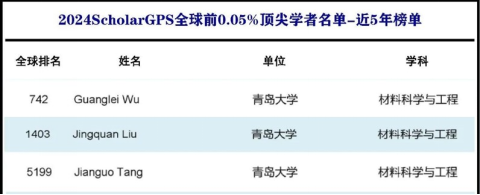3人入选ScholarGPS 2024年“全球前0.05%顶尖学者”榜单